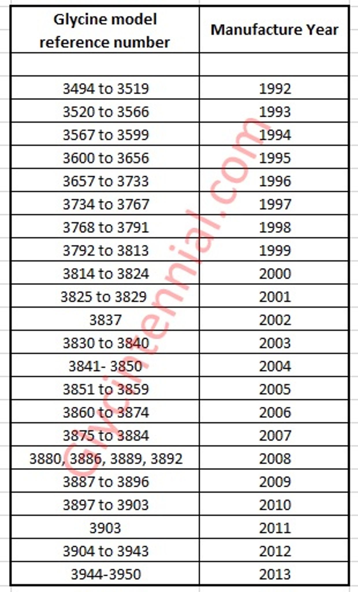 Manufacture year charts can be re-posted only by credit and attribution to Glycintennial.com