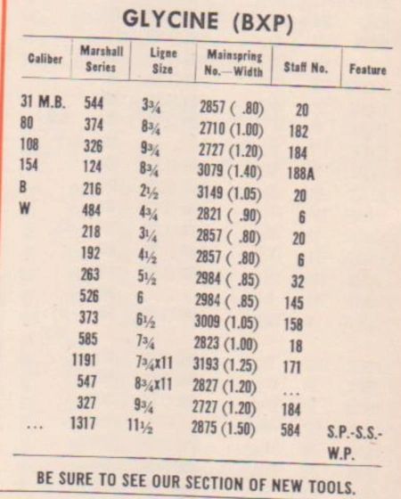 Glycine manufactured its own movements from 1914 until it has been acquired by ASUAG in 1942. The company has sourced movements for other brands also, so as A.LeCoultre ( Cal 18 ) and Bulova (cal 50 ). Below is a chart from 1942 showing the manufacture movements along with the automatic module of Eugene Meylan.